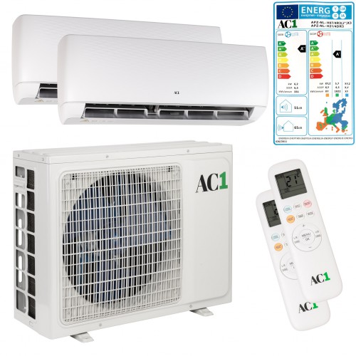 AC1 Duo-Split 5.0kW Buitenunit met 2x 2.5kW "Q-Smart Deluxe " Binnenunit A++ R32 - COOL&HEAT + WiFi