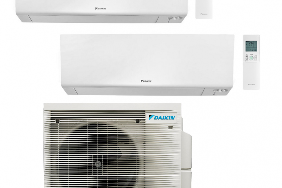 Duo-split Daikin 5.0kW buitenunit met 2x 3.5kW binnen unit New model Perfera A+++ Inclusief Wifi.