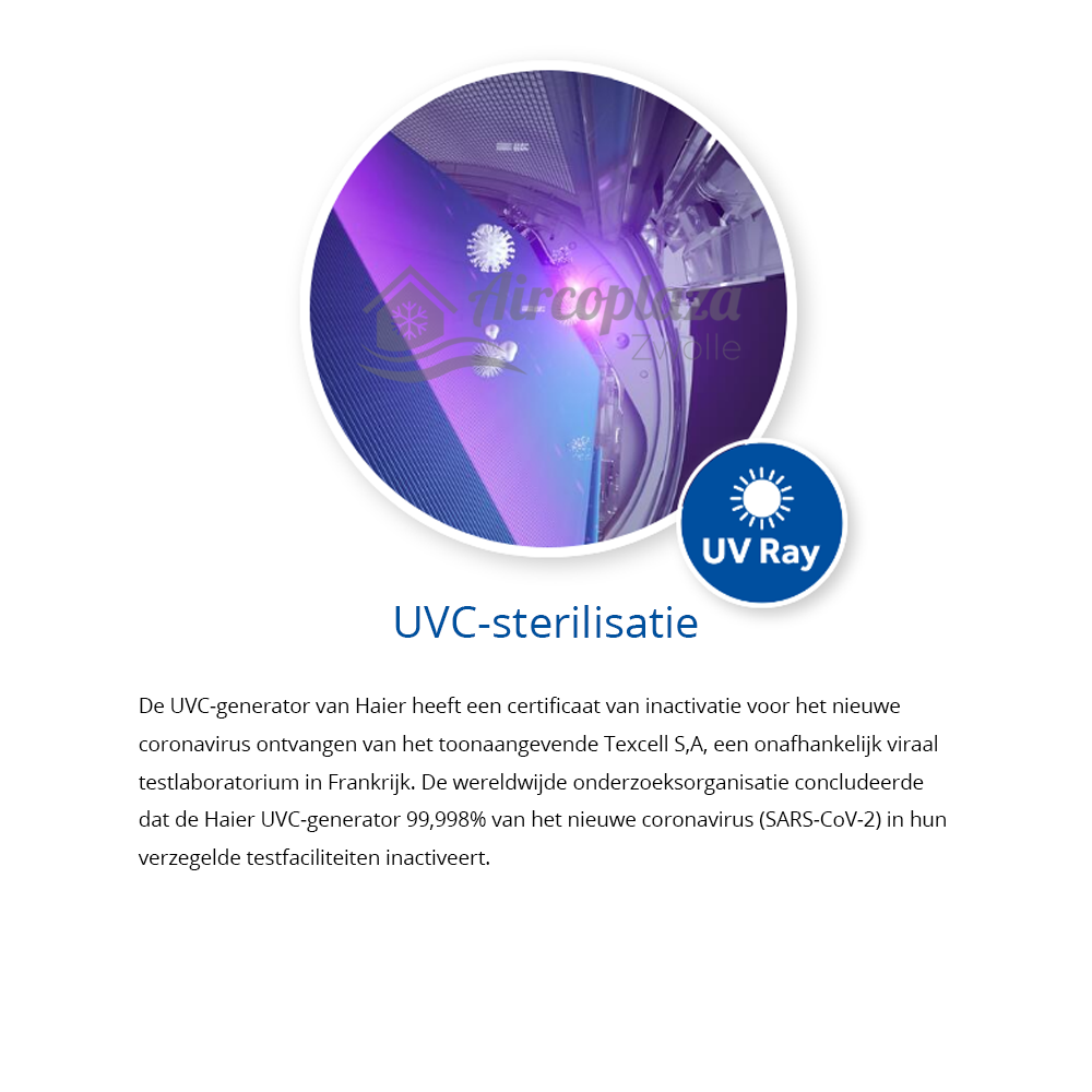 Haier "PEARL" Airco systeem voorzien van UVC Generator, deze maakt COVID-19 voor 99.99 procent onschadelijk!