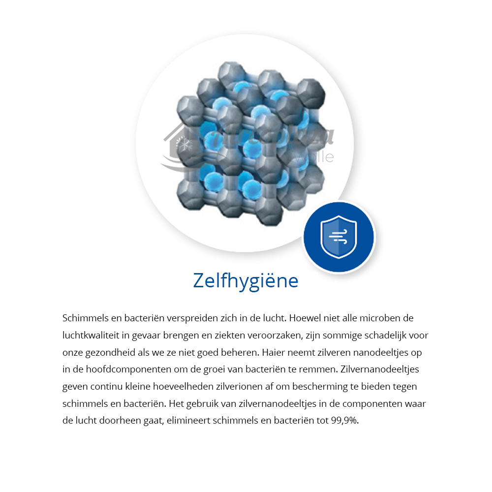 Deze technologie bevriest de verdamper/condensor in de airconditioner. Door het “koude-expansie” effect komt vuil los van het oppervlak. Hierna wordt de verdamper verhit, waardoor de rijp ontdooit en het losgeraakte vuil wegspoelt door de afvoer. Door de verhitting droogt de verdamper snel en krijgen schadelijke bacteriën geen kans.