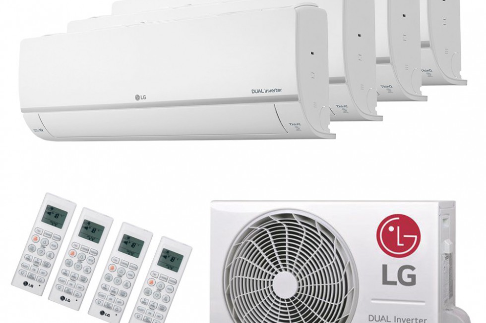 Dit multisysteem LG 7.0kW buitenunit MU4R25 met 1x 3.5kW (120m3) + 3x 2.5kW (90m3) Binnenunit + Ingebouwde WiFi