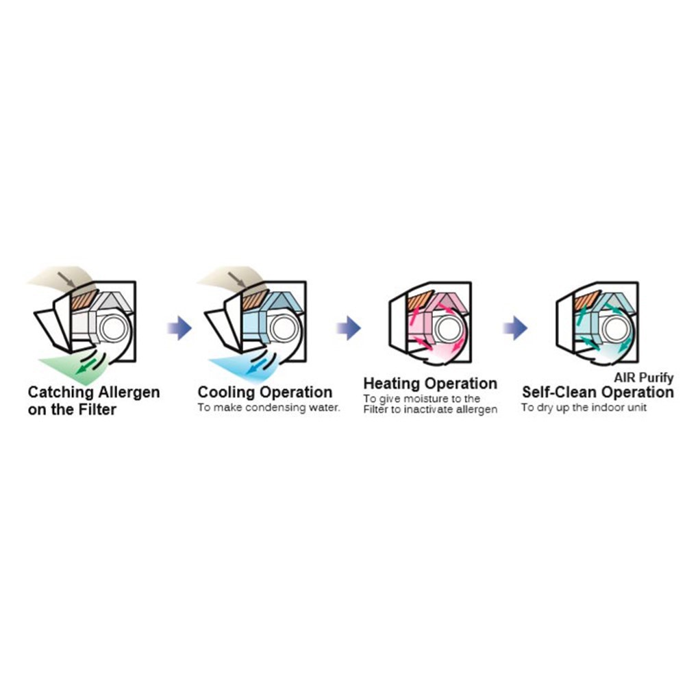 De Mitsubishi Heavy Industries wandunits zijn standaard uitgerust met de betere luchtzuiveringsfiltertechnieken. Nare luchtjes, sigarettenrook, pollen en stof, bacteriën worden gefilterd.