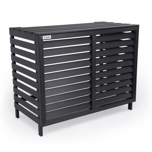 Duurzaam, robuuste Kunststof Airco cover – Buitenunit omkasting "Houtlook" Grijs Ral 7016
