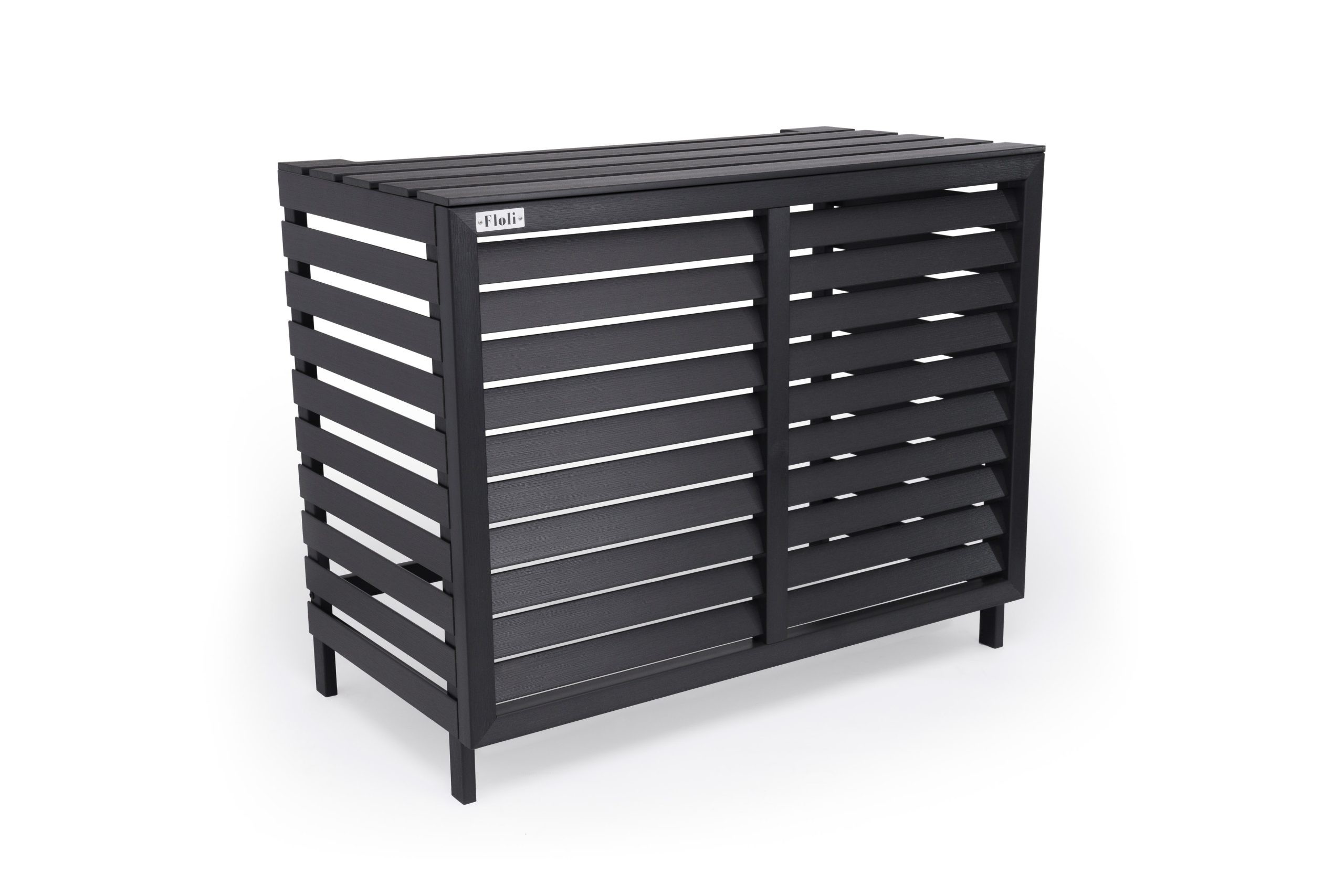 Duurzaam, robuuste Kunststof Airco cover – Buitenunit omkasting "Houtlook" Grijs Ral 7016